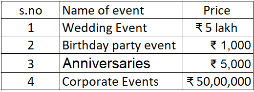 Event planning service offer:-